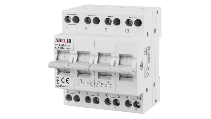 PRZEŁĄCZNIK ZASILANIA SIEĆ-AGREGAT 4P 63A 1-0-2 PSA-63A-4P