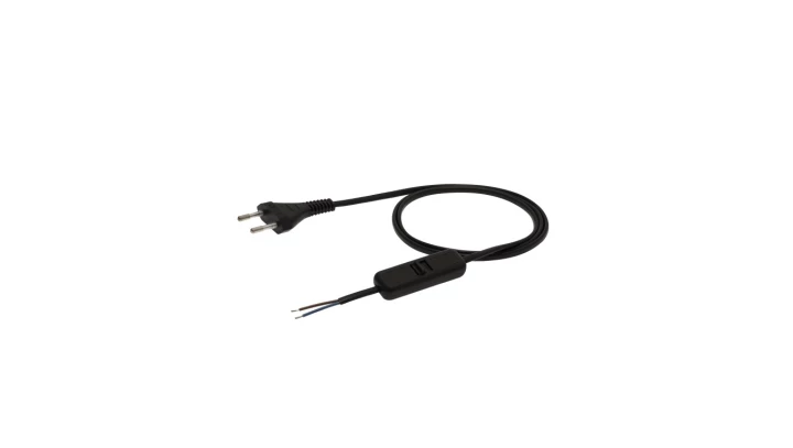 Przewód z wyłącznikiem z płaską wtyczką b/u H03VVH2-F 2x0,75 czarny S-13W-0,75-2-2 /2m/