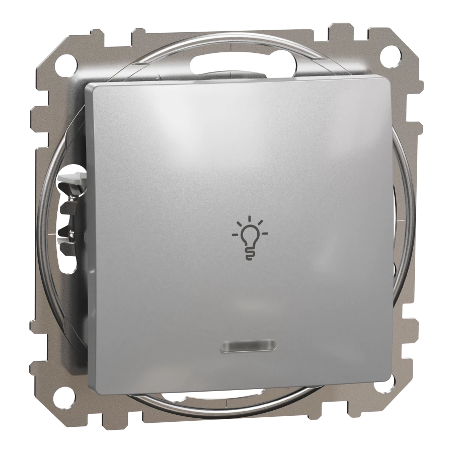 Przycisk "światło" z podświetleniem, srebrne aluminium SEDNA DESIGN o numerze katalogowym SDD113132L w kategorii Przyciski podtynkowe "światło", Przyciski "światło". Produkt wyprodukowany przez markę SCHNEIDER ELECTRIC, seria SEDNA DESIGN.