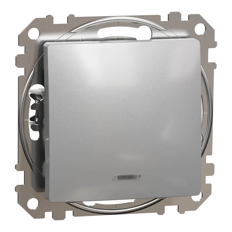 Przycisk z podświetleniem, srebrne aluminium SEDNA DESIGN o numerze katalogowym SDD113111L w kategorii Przyciski podtynkowe jednobiegunowe, Przyciski jednobiegunowe. Produkt wyprodukowany przez markę SCHNEIDER ELECTRIC, seria SEDNA DESIGN.