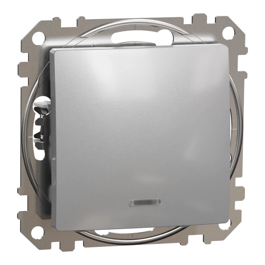 Przycisk 1-biegunowy z podświetleniem, srebrne aluminium, Sedna Design i Elements SDD113111L