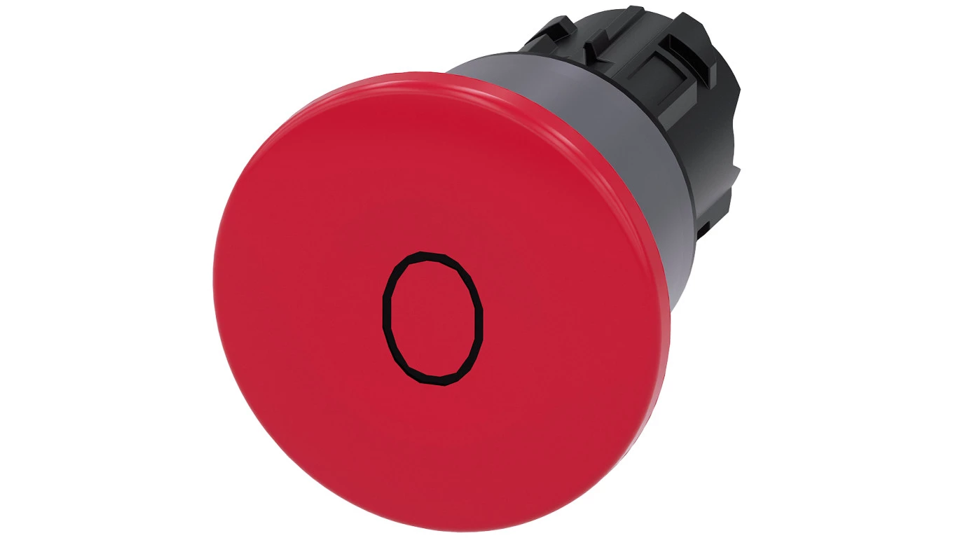 Przycisk grzybkowy 22mm okrągły tworzywo z met pierścieniem czerwony inskrypcja 3SU1030-1BA20-0AD0