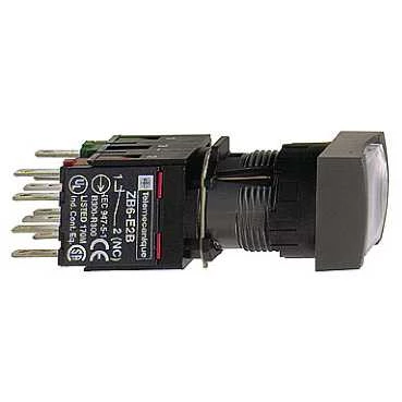 Przycisk kompletny biały kwadr. kryty podśw. O16 zatrzaskowy 1NO+1NC 12...24V XB6CF1B5B
