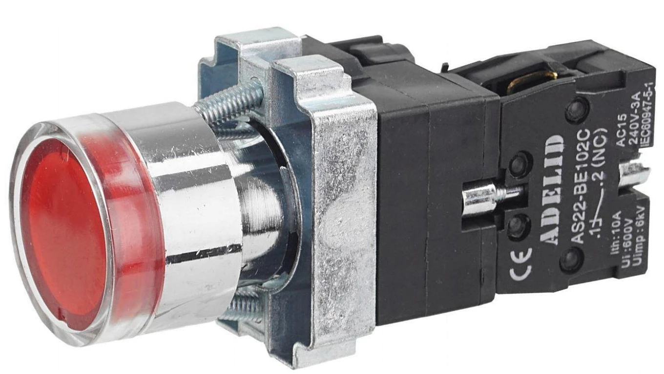 Przycisk sterowniczy podświetlany czerwony STOP z metalowym kołnierzem AS22-BW3362L