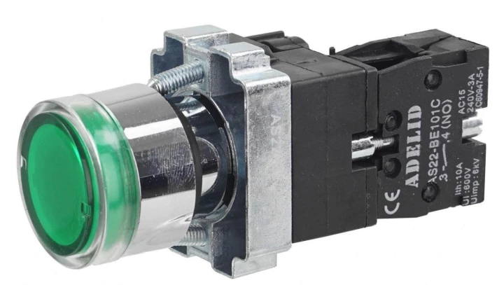 Przycisk sterowniczy 22mm zielony 1Z 1R z samopowrotem z podświetleniem ST22-KLZ-11-230-LEDAC