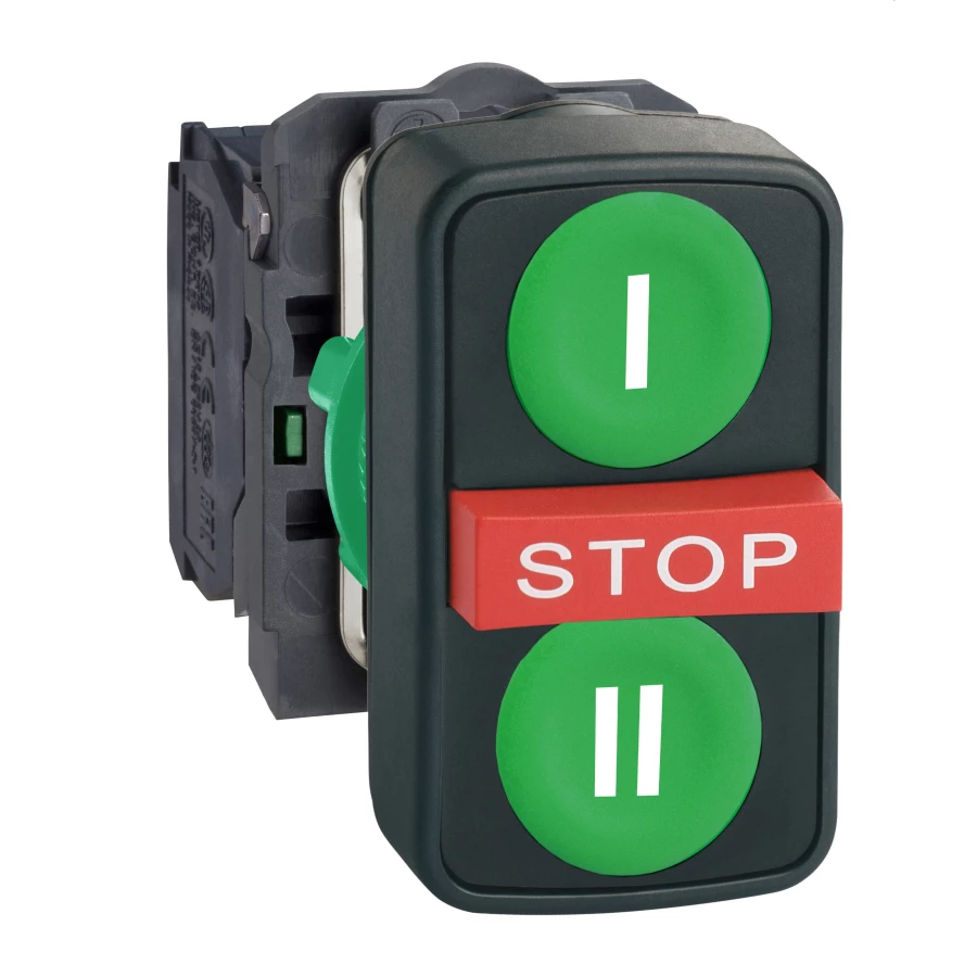 Przycisk ziel. kryty/czerw. wyst/ziel. kryty trzyklawiszowy O22 1NO+1NC+1NO XB5AA731327