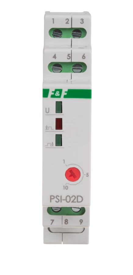 PSI-02D-230V PRZETWORNIK SYGNAŁU "CIĄGŁY NA IMPULS" 2X 16A 1M 230V AC Z NASTAWĄ DŁUGOŚCI IMPULSU