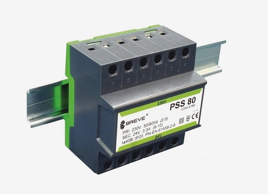Transformator jednofazowy PSS 63N 230/24V IP30 na szynę DIN TH-35 w obudowie modułowej o numerze katalogowym 16024-9890 w kategorii Transformatory z mocowaniem, Transformatory. Produkt wyprodukowany przez markę BREVE, seria PSS.