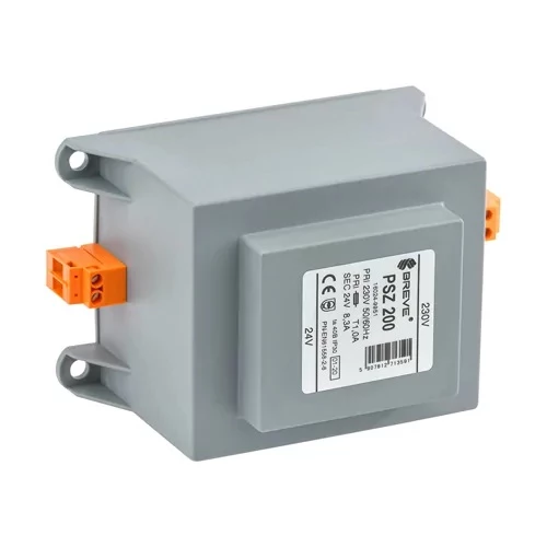 Transformator jednofazowy PSZ 200 230/230V IP30 na szynę DIN TH-35 w obudowie modułowej z zabezpieczeniem o numerze katalogowym 16052-9966 w kategorii Transformatory z mocowaniem, Transformatory. Produkt wyprodukowany przez markę BREVE, seria PSZ.