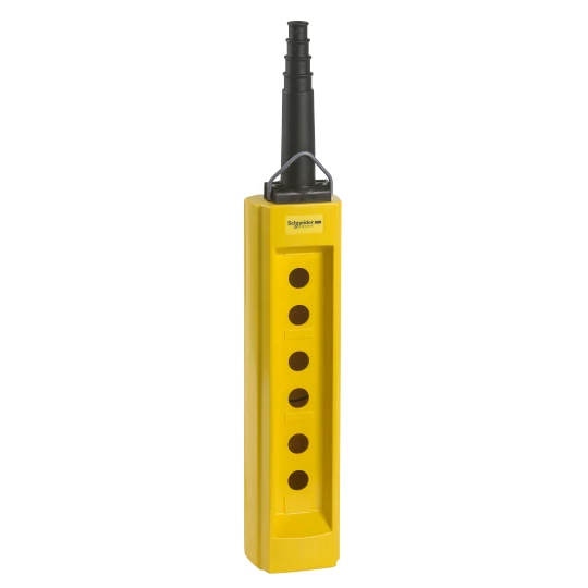 Kaseta sterownicza pusta, dowolnie konfigurowalna, z 6 otworami, żółta o numerze katalogowym XACB06 w kategorii Obudowy przycisków i przełączników, Przyciski i przełączniki sterownicze. Produkt wyprodukowany przez markę SCHNEIDER ELECTRIC.