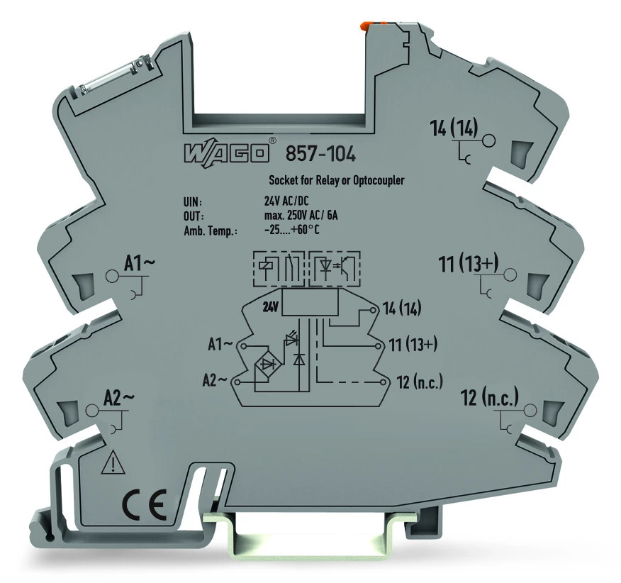 podstawka przekaźnika; znamionowe napięcie wejściowe 24 V AC/DC; do przekaźników bazowych, 5 mm; sygnalizacja statusu żółta