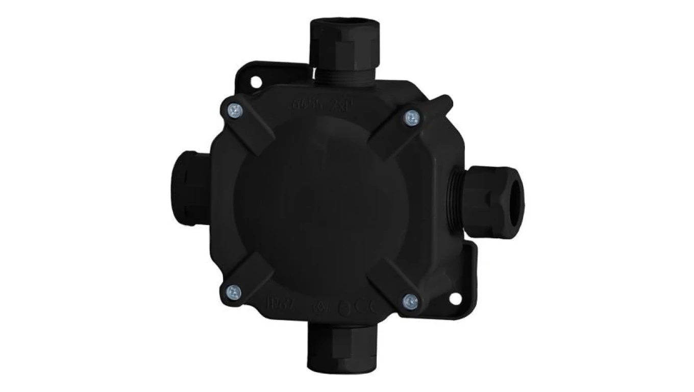 Puszka hermetyczna 27P, 144x67x132 IP67 czarna o numerze katalogowym F1.0222 w kategorii Puszki natynkowe, Puszki instalacyjne. Produkt wyprodukowany przez markę F-ELEKTRO.