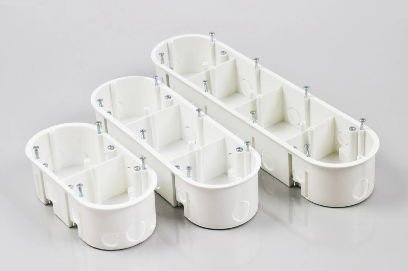 Puszka końcowa 2x60 do płyt gipsowych o numerze katalogowym   F1.0010 w kategorii Puszki podtynkowe>Puszki do betonu. Produkt wyprodukowany przez markę F-ELEKTRO.