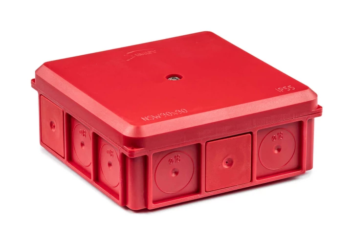 Puszka naścienna 90x37x90mm IP55 z dławnicami z wkrętem czerwona NSW90x90 35418701
