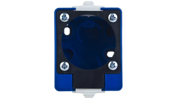 Puszka natynkowa do gniazda P-Nova 1040-0 i 1050-0 niebieska o numerze katalogowym 106-0H w kategorii Puszki natynkowe, Puszki instalacyjne. Produkt wyprodukowany przez markę PCE, seria P-NOVA.