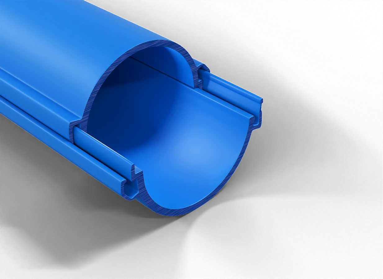 Rura dzielona w odcinkach średnica 110mm QRD 110 NIEBIESKA o numerze katalogowym 071100000301 w kategorii Rury dzielone, Rury osłonowe do układania w ziemi. Produkt wyprodukowany przez markę Q-SYSTEMS, seria Q PROTECT.