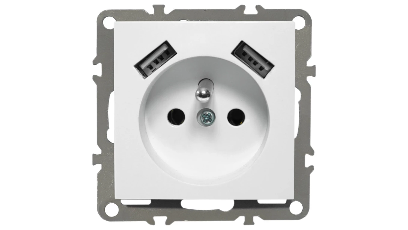 QUADRA GNIAZDKO Z BOLCEM 2X USB DO RAMEK 230V 2.1A