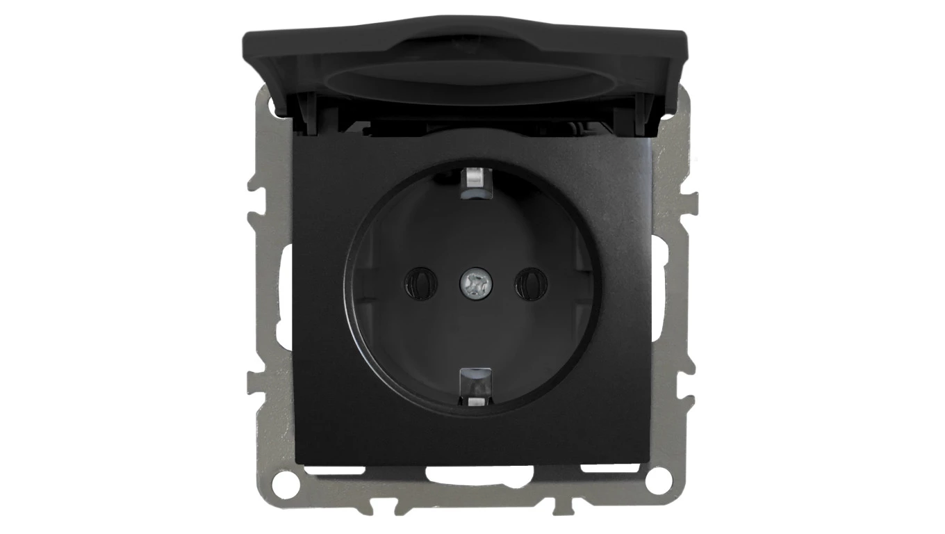 Simon 54 Gniazdo bryzgoszczelne z/u IP44 z klapką transparentną antracyt DGZ1BZ.01/48A