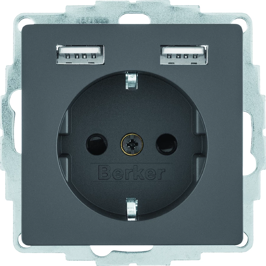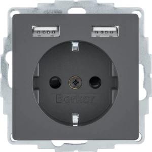 Q.x Gniazdo SCHUKO z gniazdem ładowania USB 2,4 A samozaciski antracyt aksamit 48036086