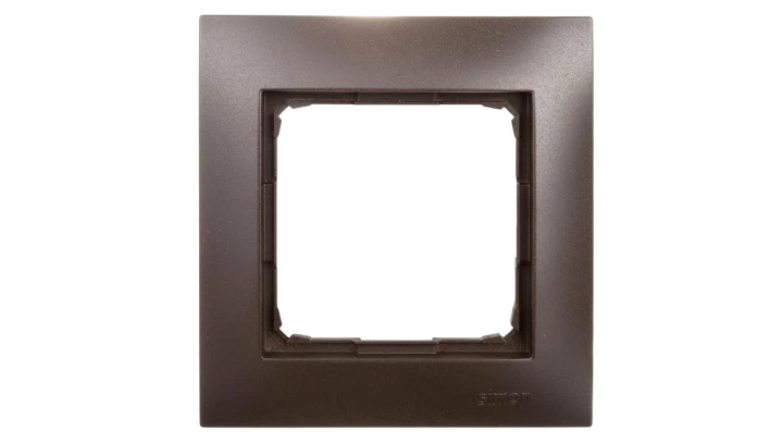Ramka 1-krotna uniwersalna IP20 / IP44, brąz mat Simon54 o numerze katalogowym DR1/46 w kategorii Ramki, Ramki, klawisze, plakietki. Produkt wyprodukowany przez markę KONTAKT-SIMON, seria SIMON 54.