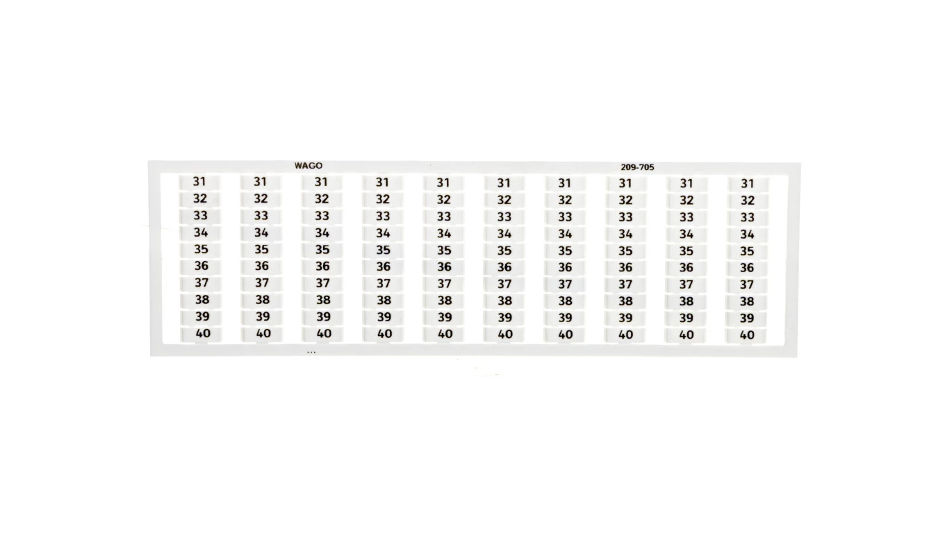 mata oznacznikowa WSB; jako karta; z nadrukiem; 31 ... 40 (10x); nierozciągalne; nadruk pionowo; do montażu zatrzaskowego; biały