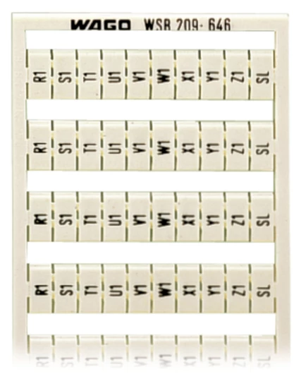 mata oznacznikowa WSB; jako karta; z nadrukiem; R1, S1, T1, U1, V1, W1, X1, Y1, Z1,SL (10x); nierozciągalne; nadruk pionowo; do montażu zatrzaskowego; biały