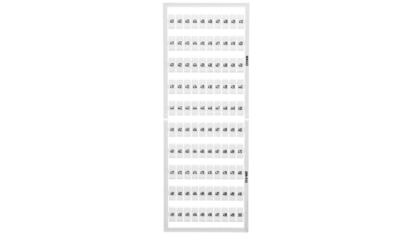 mata oznacznikowa WSB; jako karta; z nadrukiem; 401 ... 500 (1x); nierozciągalne; nadruk poziomo; do montażu zatrzaskowego; biały