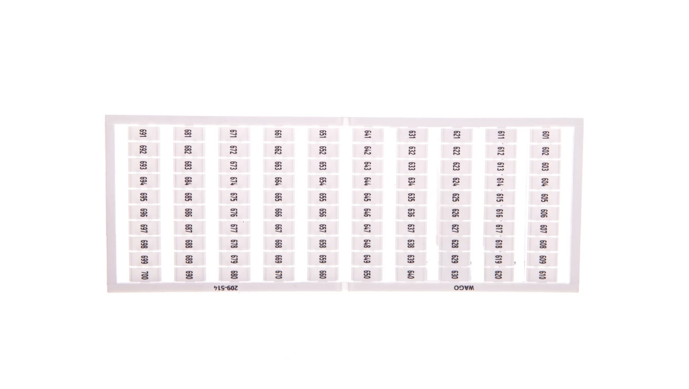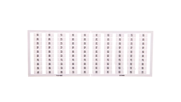 mata oznacznikowa WSB; jako karta; z nadrukiem; 601 ... 700 (1x); nierozciągalne; nadruk poziomo; do montażu zatrzaskowego; biały