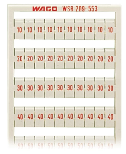 mata oznacznikowa WSB; jako karta; z nadrukiem; 10, 20 ... 50 (po 20x); nierozciągalne; nadruk poziomo; do montażu zatrzaskowego; biały
