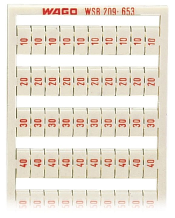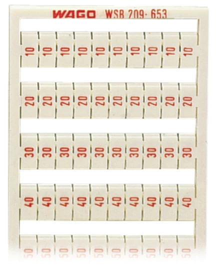 mata oznacznikowa WSB; jako karta; z nadrukiem; 10, 20 ... 50 (po 20x); nierozciągalne; nadruk pionowo; do montażu zatrzaskowego; biały