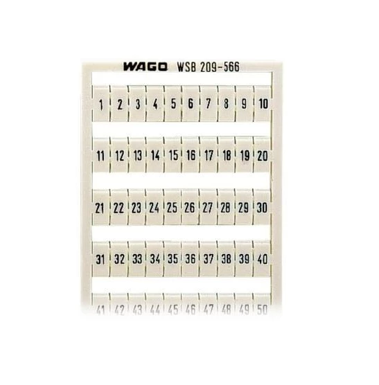 mata oznacznikowa WSB; jako karta; z nadrukiem; 1 ... 50 (2x); nierozciągalne; nadruk poziomo; do montażu zatrzaskowego; biały