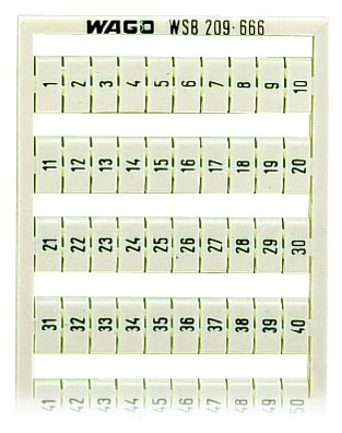 mata oznacznikowa WSB; jako karta; z nadrukiem; 1 ... 50 (2x); nierozciągalne; nadruk pionowo; do montażu zatrzaskowego; biały