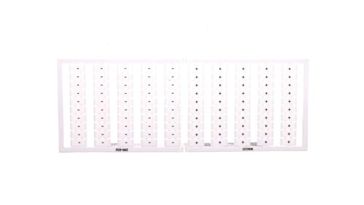 mata oznacznikowa WSB; jako karta; z nadrukiem; +/- (50x); nierozciągalne; nadruk pionowo; do montażu zatrzaskowego; biały