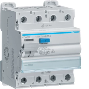 Wyłącznik różnicowoprądowy 3P+N 125A 30mA 10kA A o numerze katalogowym CDA690 w kategorii Pozostałe, Niesklasyfikowane., seria RCCB.