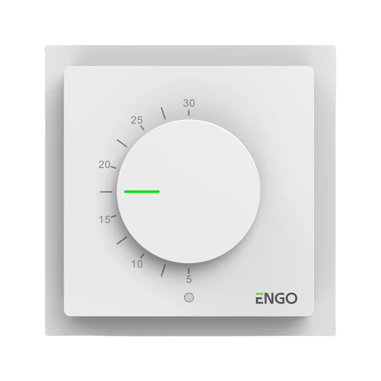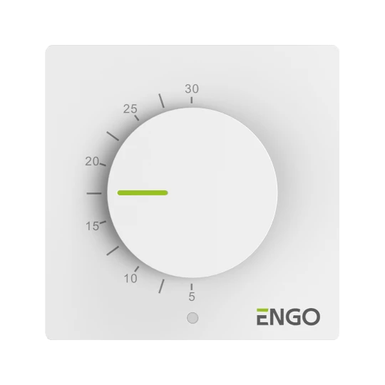 Regulator temperatury z pokrętłem, przewodowy, ENGO ESIMPLE230W, natynkowy, biały, 230V o numerze katalogowym 932332985 w kategorii Regulatory ręczne, Regulatory temperatury. Produkt wyprodukowany przez markę ENGO, seria PODŁ.ENGO.