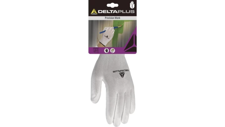 Rękawice do malowania pędzlem lub wałkiem biały 8 o numerze katalogowym DPVE702P08 w kategorii Rękawice poliestrowe i poliamidowe, Ochrona rąk. Produkt wyprodukowany przez markę DELTA PLUS.