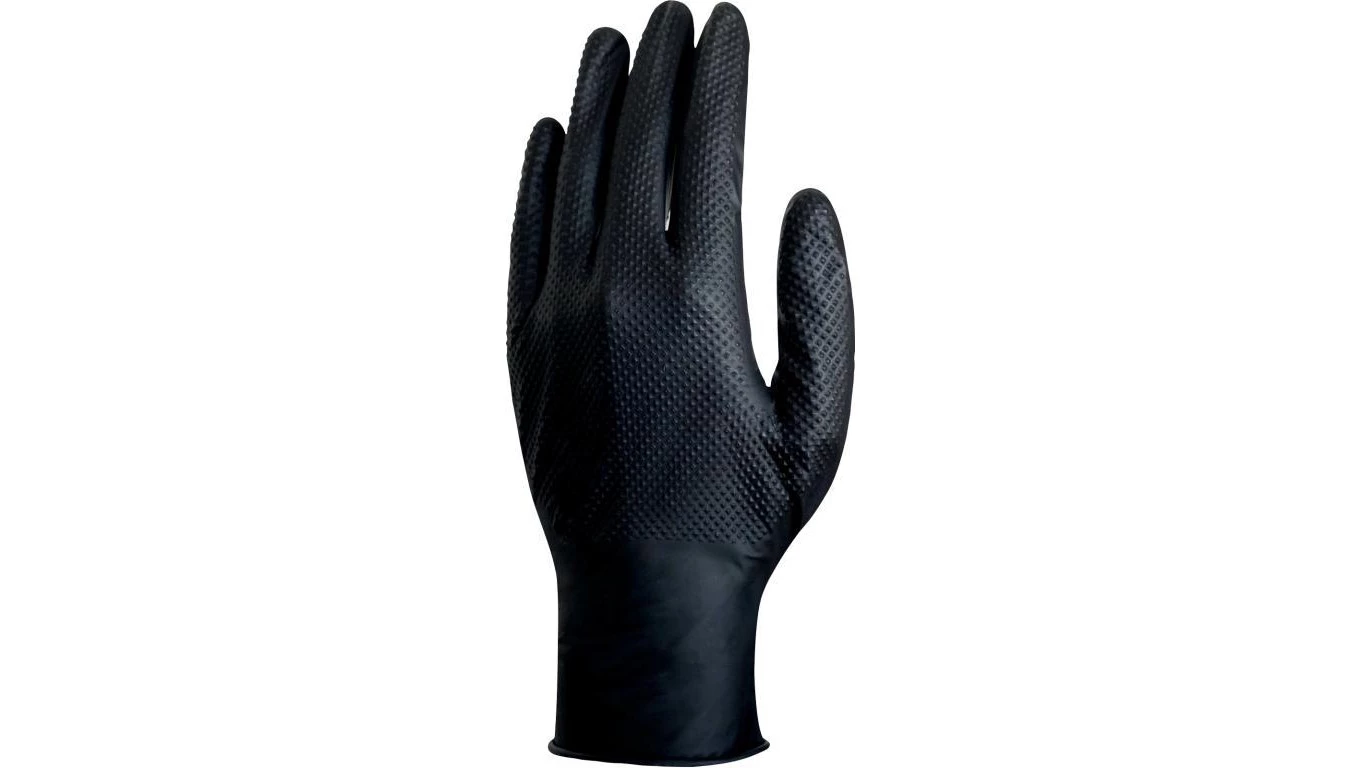 RĘKAWICE JEDNORAZOWE Z NITRYLU, NIEPUDROWANE, NITRYL O CHROPOWATEJ TEKSTURZE, OPAKOWANIE 50, CZARNE, ROZMIAR 11/12, V1600B5011