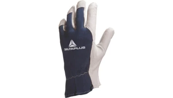 Rękawice ze skóry Licowej koziej, strona grzbietowa z drelichu bawełnianego naturalno-niebieski 8 o numerze katalogowym CT402BL08 w kategorii Rękawice skórzane, Ochrona rąk. Produkt wyprodukowany przez markę DELTA PLUS, seria CT402.