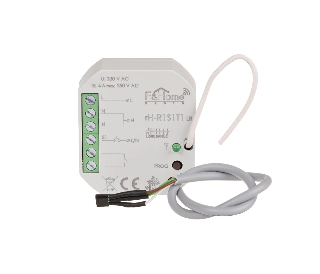 Radiowy pojedynczy przekaźnik, z nadajnikiem i czujnikiem temperatury rH-R1S1T1-LR o numerze katalogowym RH-R1S1T1-LR w kategorii Przekaźniki - pozostałe, Przekaźniki. Produkt wyprodukowany przez markę F&F.