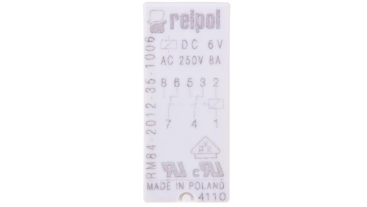 RM84-2012-35-1006 PRZEKAŹNIK MINIATUROWY 8A 2P 6V DC DO OBWODU DRUKOWANEGO I GNIAZD AGNI IP67