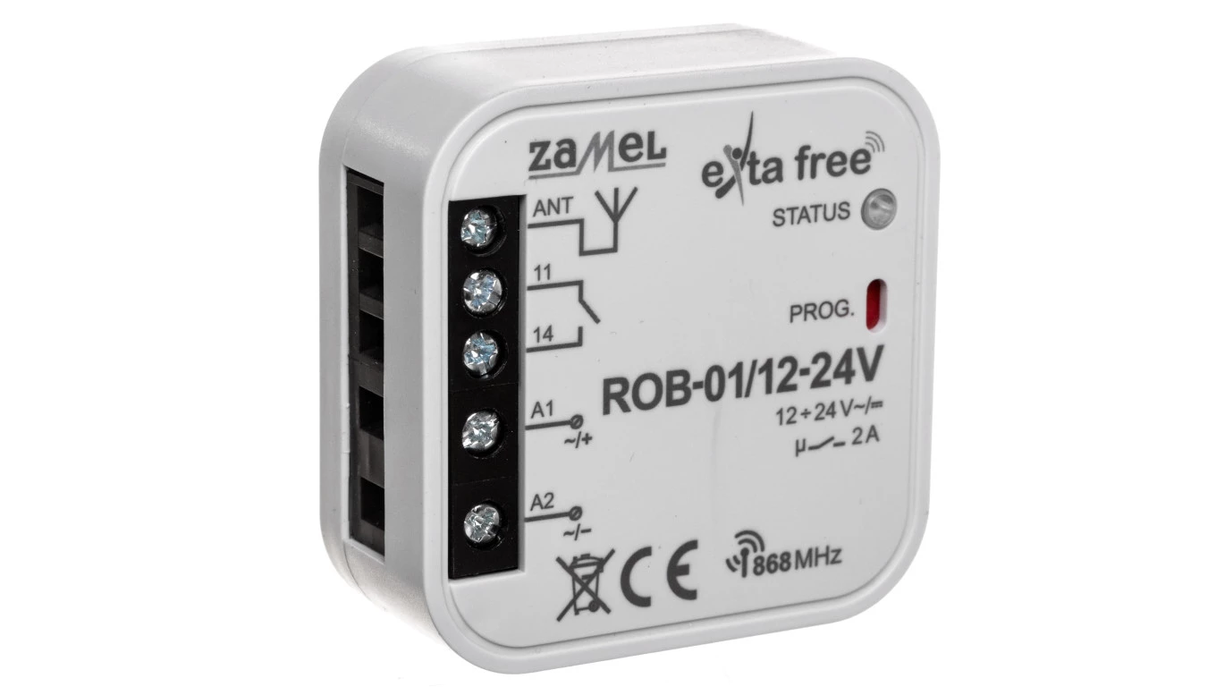 Radiowy odbiornik bramowy Typ: ROB-01/12-24V o numerze katalogowym EXF10000039 w kategorii Sterowanie - pozostałe produkty, Aparatura sterująca. Produkt wyprodukowany przez markę ZAMEL, seria EXTA FREE.