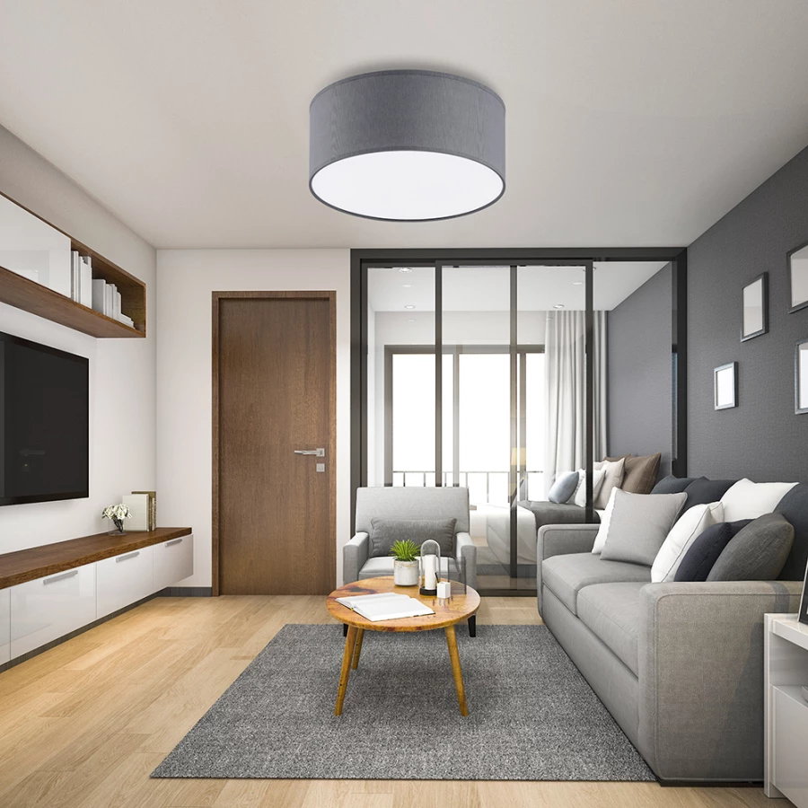 RONDO BIAŁY SZARY OPRAWA SUFITOWA E_27 - LED MAX 15W METAL / TWORZYWO TKANINA / TWORZYWO