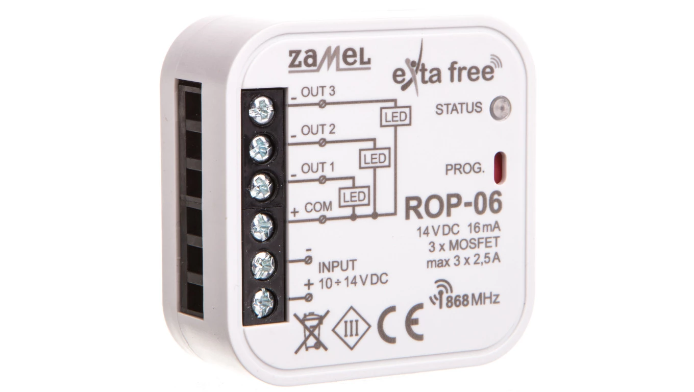 Radiowy odbiornik dopuszkowy 3-kanałowy Typ: ROP-06 o numerze katalogowym EXF10000092 w kategorii Przekaźniki - pozostałe, Przekaźniki. Produkt wyprodukowany przez markę ZAMEL, seria EXTA FREE.