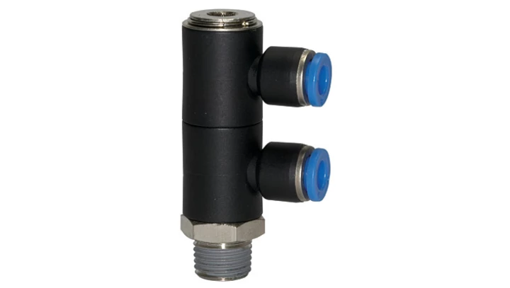 Rozdzielacz wtykowy pneumatyczny 2x banjo R 1/8 GZ do węża fi 8 mm, tworzywo sztuczne