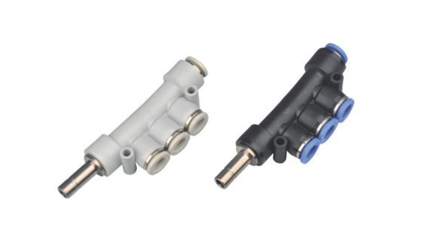 Rozdzielacz wtykowy T wielosegmentowy fi 8, tworzywo sztuczne/mosiądz niklowany, 224.008