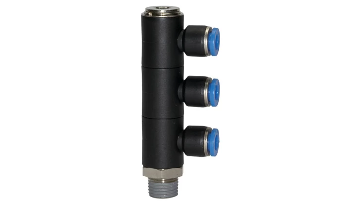 Rozdzielacz wtykowy typu Banjo jednostronny R 1/8 GZ do węża fi 4 mm, tworzywo sztuczne