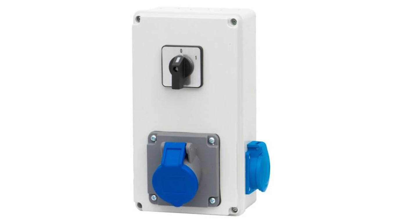 Rozdzielnica BICO - gniazda 16A 3p, 230V, 0/1 (16A) o numerze katalogowym   F3.0798 w kategorii Osprzęt przemysłowy-siłowy>Zestawy zasilające. Produkt wyprodukowany przez markę F-ELEKTRO.