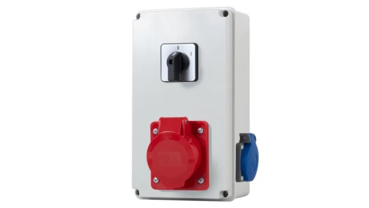 Rozdzielnica BICO - gniazda 32A 5p, 230V, 0/1 (25A) o numerze katalogowym   F3.0369 w kategorii Osprzęt przemysłowy-siłowy>Zestawy zasilające. Produkt wyprodukowany przez markę F-ELEKTRO.