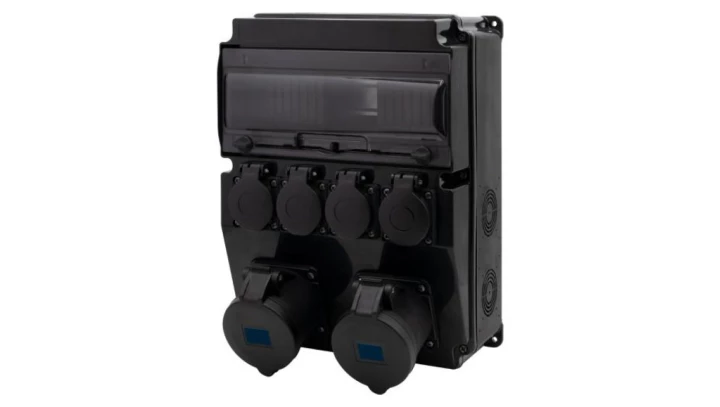 Rozdzielnica budowlana czarna (sceniczna) CAJA 12M SCENIC - gniazda proste 2x16A 3p, 4x230V /12 modułów/ F3.2904