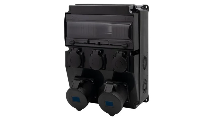 Rozdzielnica budowlana czarna (sceniczna) CAJA 12M SCENIC - gniazda proste 2x32A 3p, 3x230V /12 moduł F3.2902ów/